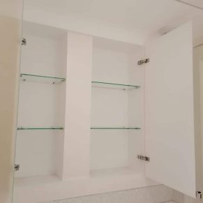 Мы воплощаем ваши самые смелые идеи с помощью разнообразных видов стекла, включая уникальные рисунки и текстуры, чтобы подчеркнуть индивидуальность вашего интерьера. Наши передовые технологии позволяют создавать дверцы с безрамным стеклом, делая их легкими и изящными, при этом максимально эффективно используя пространство ниши.